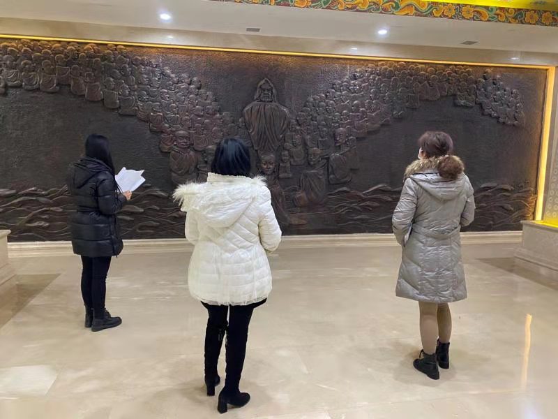 禪博園講解員熊郁蔚、李婉蓉、王艷蘭、彭麗芳自發(fā)成立講解培訓學習小組,合理利用閑余時間,進行園區(qū)講解培訓。由專職講解員引導和指導,提高景區(qū)講解員學習掌握知識和講解技巧,并將其融會貫通到日常講解工作中。