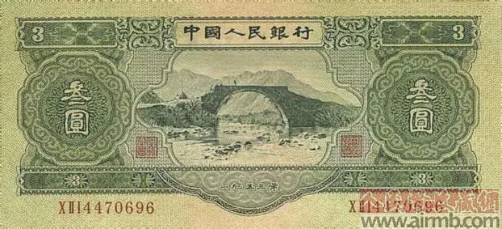 1953年發(fā)行的第二套人民幣三元紙幣的背景圖:龍?jiān)纯诖蠼輼?/span>