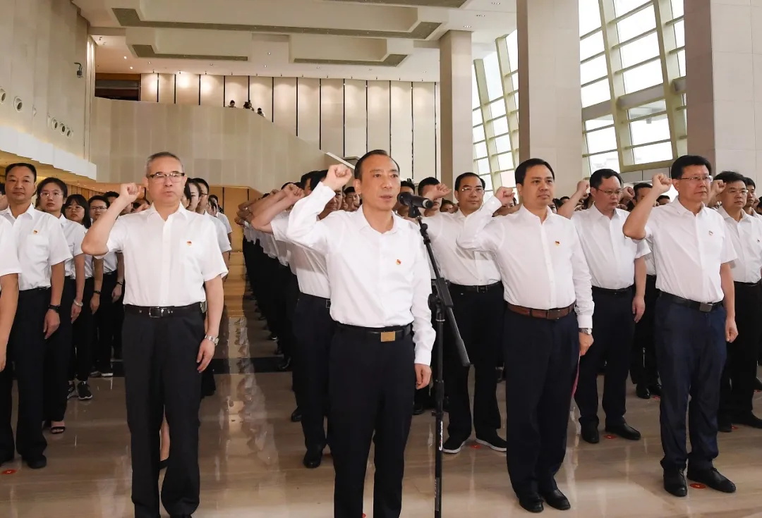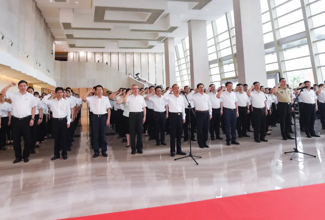 市委書記于秀明領誓并講話。市委副書記、市長嚴允主持。張鑒武、陳榮等市四套班子黨員領導出席活動。