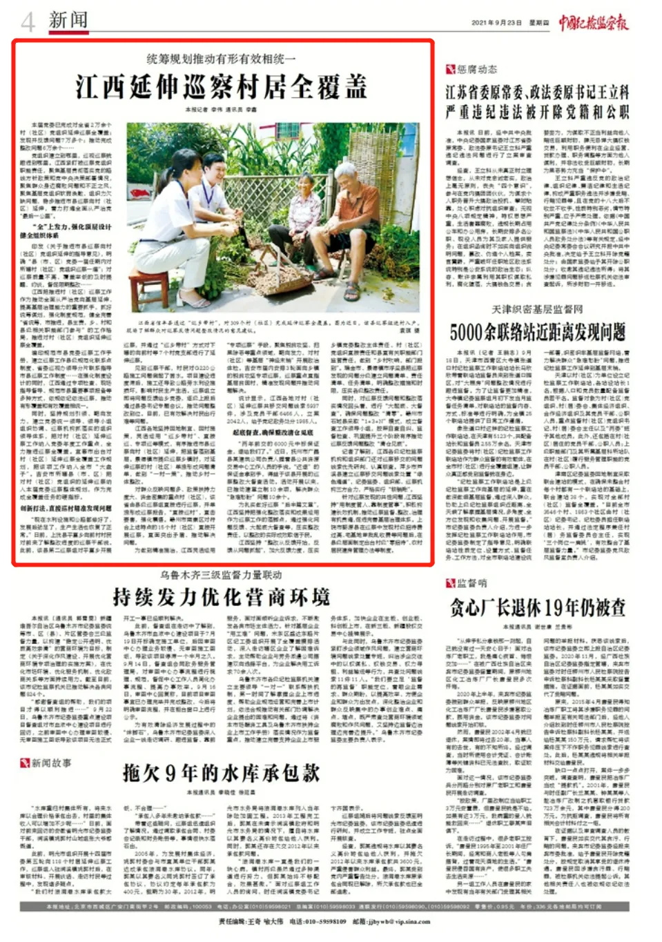 黨組織建立到哪里,巡視巡察就跟進到哪里。江西緊盯被巡察黨組織職能責任,聚焦基層貫徹落實黨的路線方針政策和黨中央決策部署情況,聚焦群眾身邊腐敗問題和不正之風,聚焦基層黨組織軟弱渙散、組織力欠缺問題,穩(wěn)步推進市縣巡察向村(社區(qū))延伸,著力打通全面從嚴治黨“最后一公里”。
